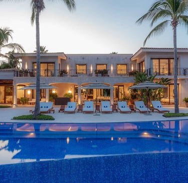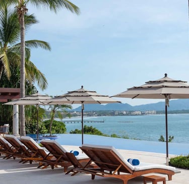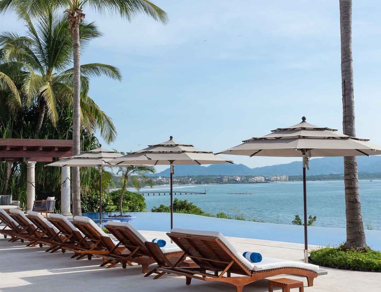 Vacaciones de lujo frente al Pacífico mexicano, con playa y alberca privada.